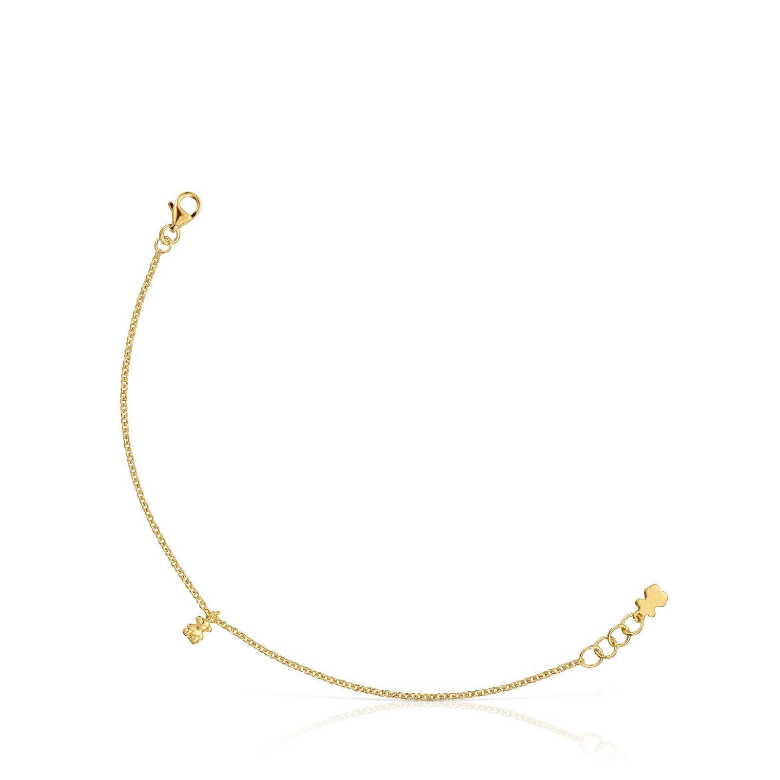 - Pulsera cadena TOUS Bold Bear con baño de oro 18 kt sobre plata, anillas redondas y motivo oso. Tamaño oso: 5,35 mm. Longitud pulsera: 17,5 cm. Cierre mosquetón. Pieza fabricada con plata de primera ley con baño de oro de 18 a 23 kt y 3 micras de espesor. Esta calidad garantiza una mayor durabilidad de la joya.