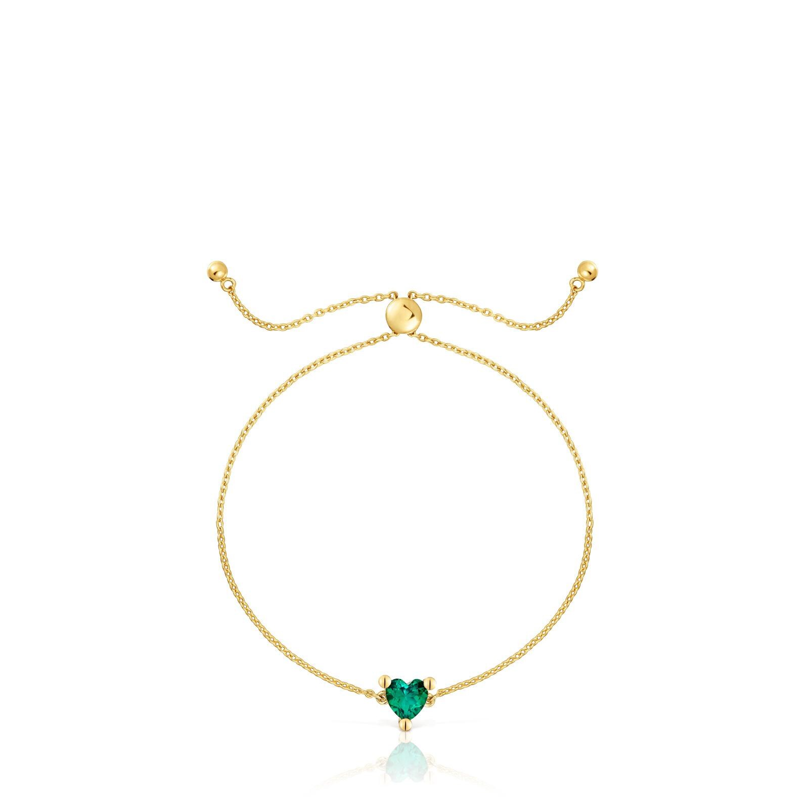 - Pulsera cadena TOUS Garden Of Love LGG con baño de oro 18 kt sobre plata y esmeralda talla corazón creada en laboratorio. Tamaño gema: 6 mm. Longitud pulsera: 24 cm. Cierre deslizante. Pieza fabricada con plata de primera ley con baño de oro de 18 a 23 kt y 3 micras de espesor. Esta calidad garantiza una mayor durabilidad de la joya. Nota: Pieza elaborada con gemas creadas en laboratorio.