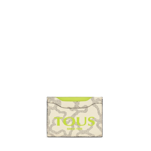 TOUS Kaos Legacy cardholder in canvas with a beige-colored Kaos print. It also features trim in lime green colored cowhide leather. It features three outer slots for cards and one compartment for coins with snap button fastening. Measurements (height x width x depth): 7.5 x 10 x 2 cm.