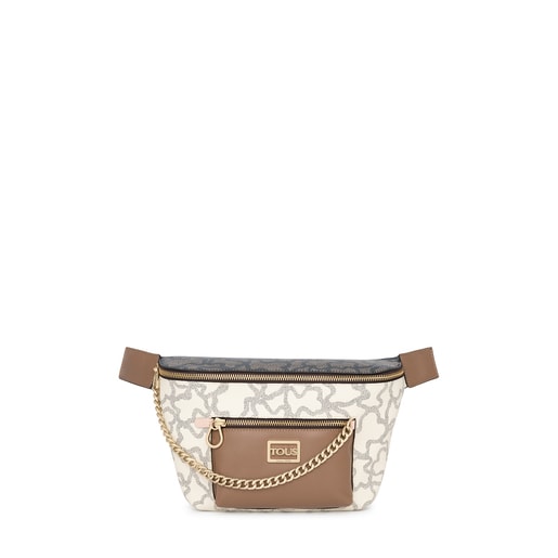 The iconic Kaos print and TOUS logo stand out on this waist bag in beige and black canvas with calfskin details, which belongs to the TOUS Kaos Legacy collection. Elegant, functional accessories for a timeless look.