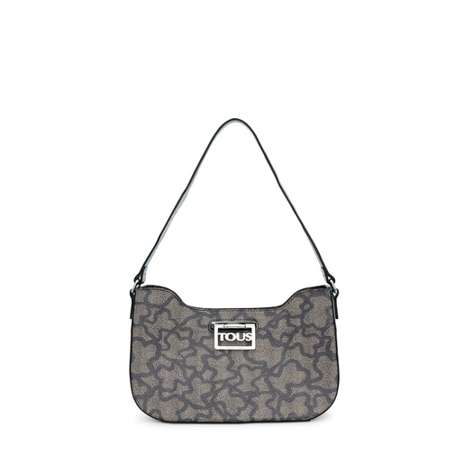 TOUS Kaos Legacy shoulder bag in canvas with a black colored Kaos print. It also features trim in turquoise colored cowhide leather. The clasp has a revolving metal plate. The strap comes with an eyelet for hanging a scarf for decoration. It has a small open pocket inside for cards. Measurements (height x width x depth): 17 x 26 x 7 cm.