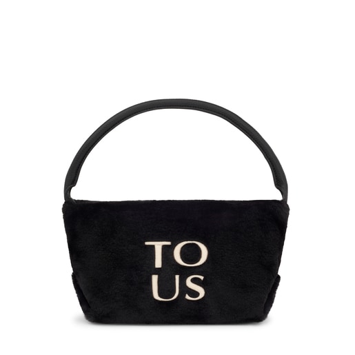 TOUS Balloon Wild shoulder bag in black faux fur combined with synthetic leather trim. Handbag with zipper fastening and fixed shoulder strap. Measurements (height x width x depth): 15 x 28 x 14.5 cm.