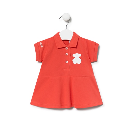 Tous Baby short-sleeve, polo-neck dress in soft pique fabric with embroidered bear on the chest. Low waist and pleated skirt. Composition: 95% Cotton, 5% Elastane. Colour: Coral.