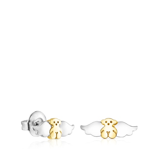 TOUS Fragile Nature two-tone earrings in gold colored IP steel with winged bear measuring 13 mm. Push back. Production technique: Casting.