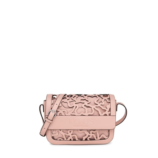TOUS Amaya Kaos Shock crossbody bag in synthetic leather with Kaos die-cut detail in pink. Features a flap and closes with a magnetic button. Adjustable crossbody strap. Includes a polyester inner bag with a zipper. This bag can be detached using the push buttons included. Measurements (height x width x depth): 20 x 28 x 8 cm.
