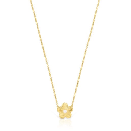 TOUS Iris Motif necklace in silver vermeil with a flower silhouette and cultured pearl in the center. Motif size: 18 mm. Size of the cultured pearl: 4 mm. Necklace length: 40-45 cm. Spring ring clasp.