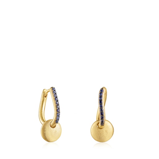 TOUS Luah full moon hoop earrings in silver vermeil, measuring 8.5 mm, with blue sapphire pavé, in different shades, on blue rhodium plating measuring 15 mm. Hoop clasp. Sterling silver plated with 18kt gold with a thickness of 3 to 5 microns and with no other metal between them. Production technique: Casting.