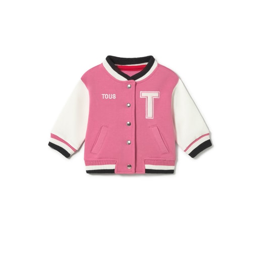 Tous Baby varsity jacket with appliqué logo and Bold Bear on the back. Popper fastening with decorative front pockets. Ribbed striped trim on collar, cuffs and waistband. Composition: 100% Cotton. Colour: Pink.our: Pink.