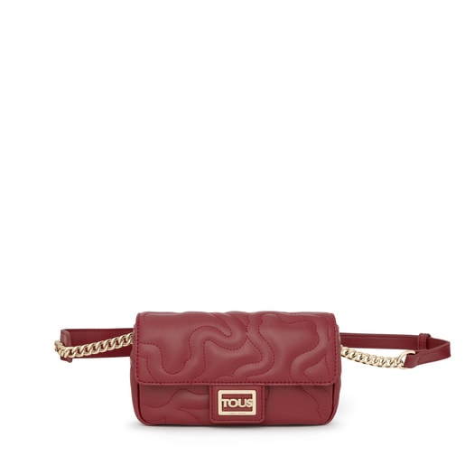 Sac banane TOUS de la collection Kaos Dream en polyuréthane matelassé en forme d'oursons avec finition imitation cuir bordeaux. Ceinture longue de type bandoulière réglable. Fermeture par bouton aimanté. Une poche extérieure plate. Dimensions : 6 x 21 x 12 cm.