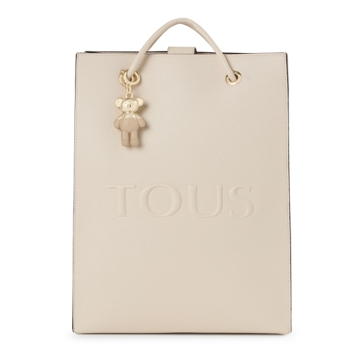 Sac Shopping de la collection TOUS Pop grand en polyuréthane avec finition saffiano et relief TOUS de couleur beige. Fermeture par bouton aimanté. Bandoulières longues pour les épaules. Poche intérieure. Le sac est décoré d'un ourson accroché. Dimensions (hauteur x largeur x profondeur) : 25 x 10 x 31 cm.