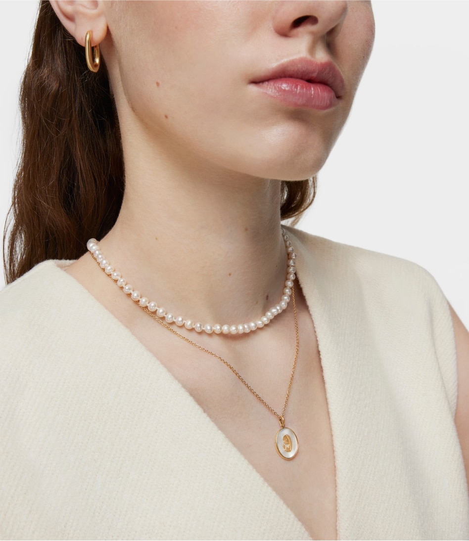 Collar corto de plata perlas cultivadas y detalle colgante oso Sweet Dolls