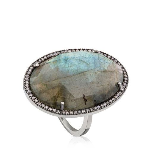 Anillo TOUS Dinah en plata de primera ley pavonada, diamantes ice y labradorita. Peso total: 0,42ct.
