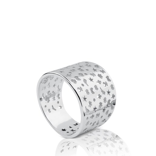 Anillo TOUS Mini Motif de plata de primera ley con motivos calados.