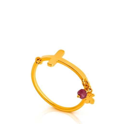 Anillo TOUS Motif con baño de oro 18 kt sobre plata y rubí. Motivo: 1,6 cm. Gema: 0,3 cm. Plata de primera ley recubierta de oro de 18kt con un espesor de 3 a 5 micras y sin ningún otro metal entre ambos.