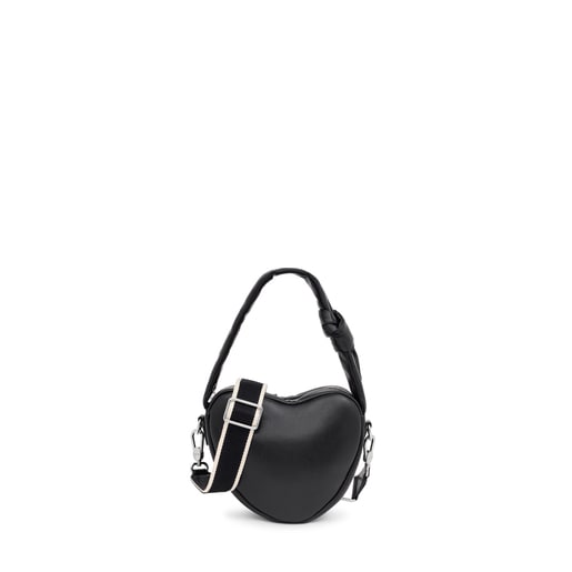 Bolso bandolera TOUS Carol en forma de corazón, elaborado con piel sintética y de color negro. Cierre con cremallera. Asa fija de hombro o mano con un bonito nudo decorativo y asa bandolera ajustable y extraíble. Medidas (alto x ancho x fondo): 17 x 21 x 6 cm.