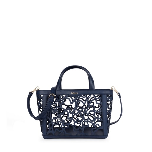 Bolso capazo pequeño TOUS Kaos Shock de vinilo en color azul marino. Asas de mano y asa bandolera ajustable y extraíble. Lleva botón a presión para poder incorporar bolsa Kaos Shock. Medidas: 21x28x14 cm. Nota: Bolsa interior no incluida.