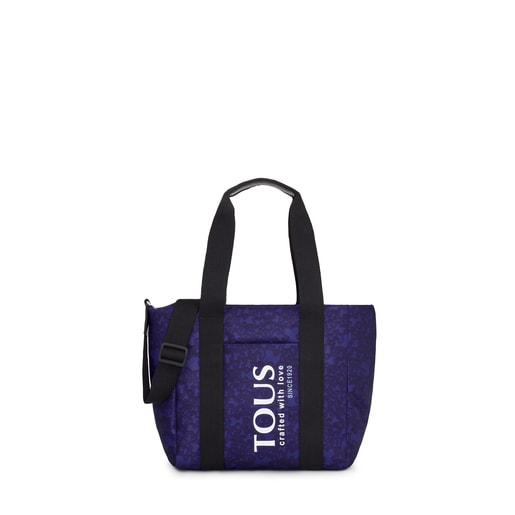 Bolso capazo pequeño TOUS Kaos Mini Evolution en color morado de nylon reciclado combinado con detalles de piel sintética. Capazo con cierre de cremallera y bolsillo exterior abierto. En el interior hay un bolsillo con cremallera y un bolsillo abierto. Asas fijas de hombro y asa bandolera ajustable y extraíble con ganchos. Medidas (alto x ancho x fondo): 28 x 41 x 13 cm.