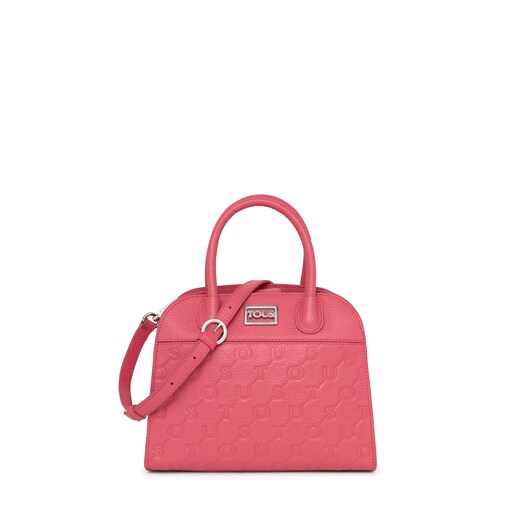 Bolso city pequeño TOUS Script de piel en color fucsia. Cierre con botón magnético. Asas de mano y asa larga de bandolera extraíble y ajustable. Un bolsillo interior plano. Medidas: 11,5 x 23,5 x 19,5 cm.