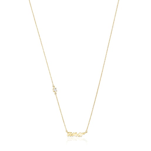 Collar TOUS Crossword amor de oro amarillo de 18kt con diamante talla brillante, H/SI de 0,05ct. Longitud del collar: 45cm, con anilla a 42cm. Técnica de producción: Fundición