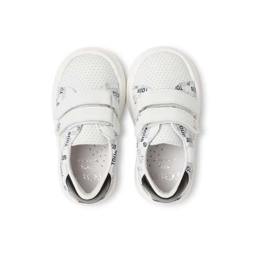 Deportiva Tous Baby logo TOUS con doble cierre adherente, se ajusta fácilmente para que los mas pequeños puedan ponérselas y quitárselas solitos. Cómoda, resistente y a la moda. Composición: 55% Poliuretano 45% Nylon // Forro: 100% Piel Porcino // Planta: 100% Piel Porcino // Suela: 100% Sintético. Color: Blanco. Fabricado en la UE.