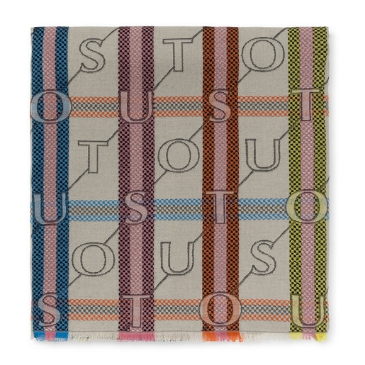 Foulard TOUS Legacy Jacquard beige con estampado monograma de colores. Composición: 60% modal, 40% algodón. Medidas: 200 x 70 cm.