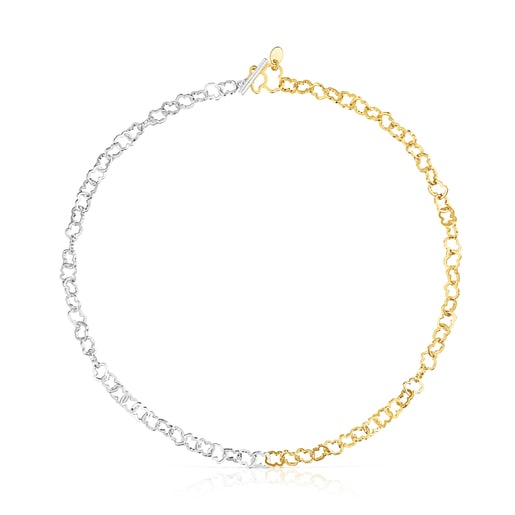 Celebramos nuestro icono con esta gargantilla bicolor de plata y con baño de oro 18 kt sobre plata a base de anillas en forma de oso de nuestra colección Carrusel. Reeditamos con nuevas piezas una colección clásica de TOUS, creando joyas versátiles perfectas para cualquier momento del día.