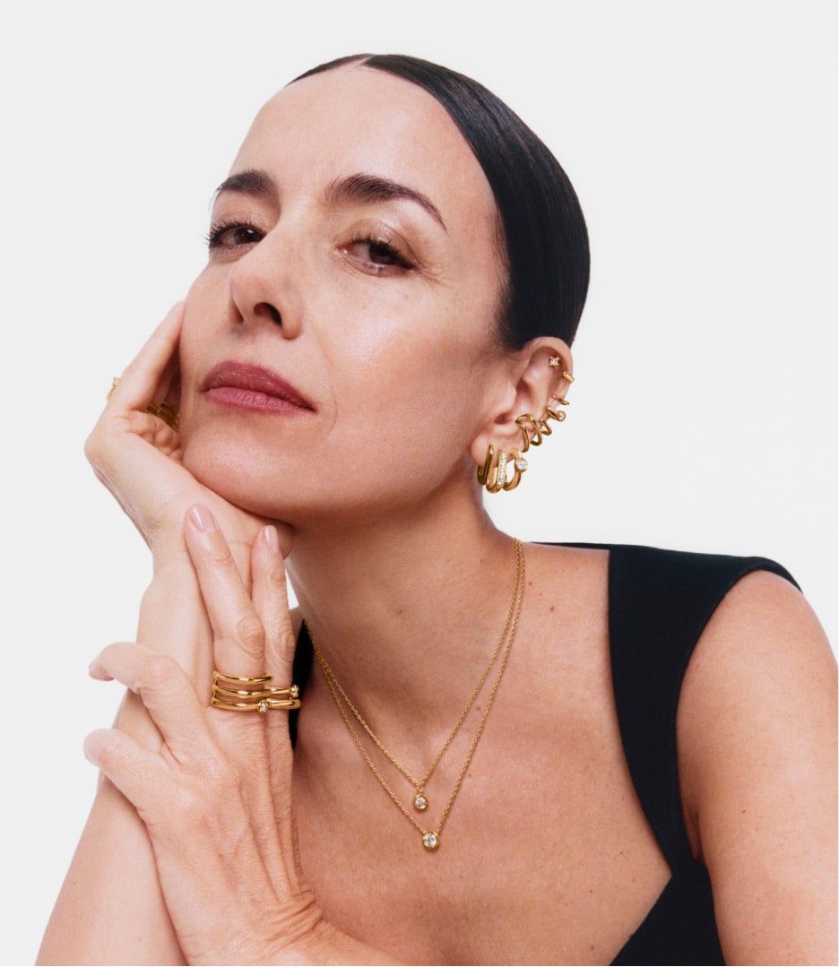 Earcuff 5 aros con baño de oro 18 kt sobre plata y diamante creado en laboratorio Line LGD