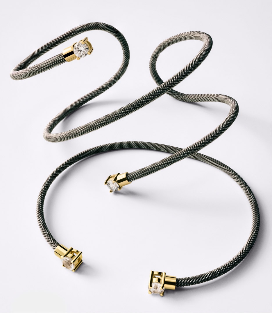 Anillo espiral de acero, oro 14 kt y diamantes creados en laboratorio TOUS Mesh LGD