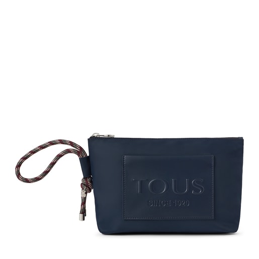 Neceser grande Tous de la colección Empire Soft Chain de nylon reciclado en color azul marino. Cierre con cremallera, cuerda de mano. Neceser cuenta con 2 bolsills planos: exterior y interior. Medidas: 8 x 26 x 16cm.