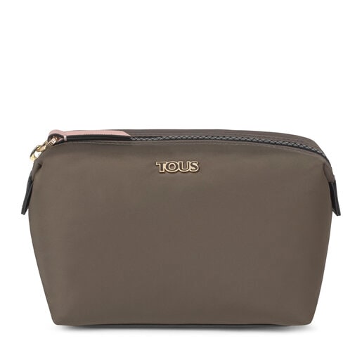 Neceser mediano Tous de la colección Shelby de nylon en color caqui. Cierre con cremallera. Bolsillo interior plano. Medidas: 19 x 13 x 13 cm.