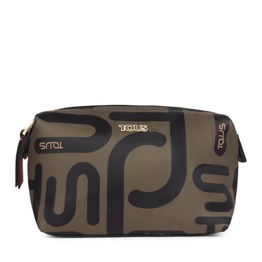 Neceser mediano Tous de la colección Shelby Logogram de nylon en color caqui y rosa. Cierre con cremallera. Bolsillo interior plano. Medidas: 19 x 13 x 13 cm.