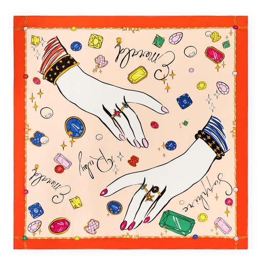 Pañuelo TOUS Gems con estampado de color rojo. Composición: 100% poliéster. Medidas: 120 x 120 cm.