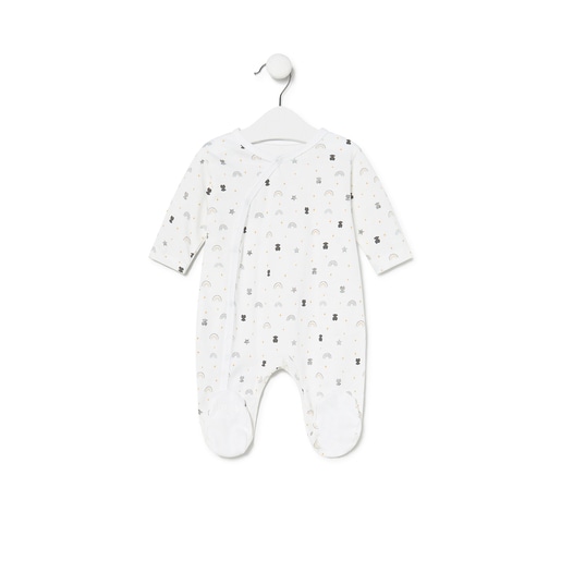 Pelele de bebé Tous Baby de cuello cruzado, manga larga. Confeccionado en suave algodón estampado con pequeños arco iris, estrellitas y osos. Cierre con botones a presión frontales hasta uno de los pies. Composición: 100% Algodón. Color: Blanco. Certificado OEKO/TEX*. Fabricado en la UE.