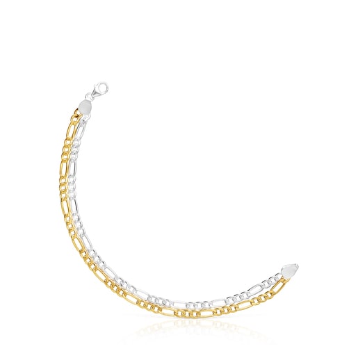 Pulsera TOUS Basics con cadena doble bicolor de plata de primera ley y plata con baño de oro 18 kt sobre plata. Longitud: 17,6cm. Técnica de producción: Mecanización.