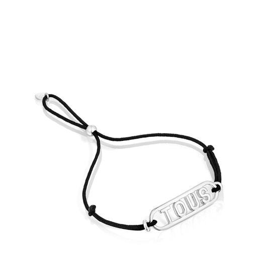 Pulsera TOUS Logo de nylon negro con placa de plata de primera ley. Tamaño placa: 8,2 x 28,5 mm. Cierre deslizante.