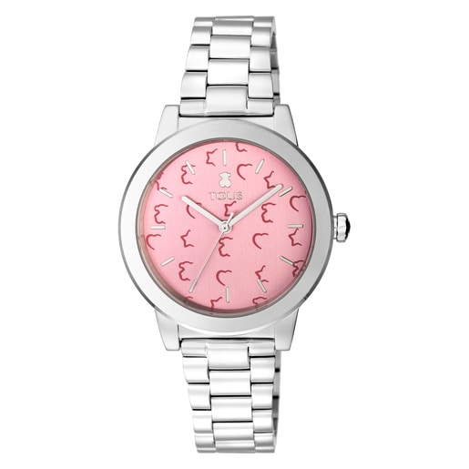 Dale un boost de color a tus muñecas con Glazed y este reloj de acero y dial rosa.