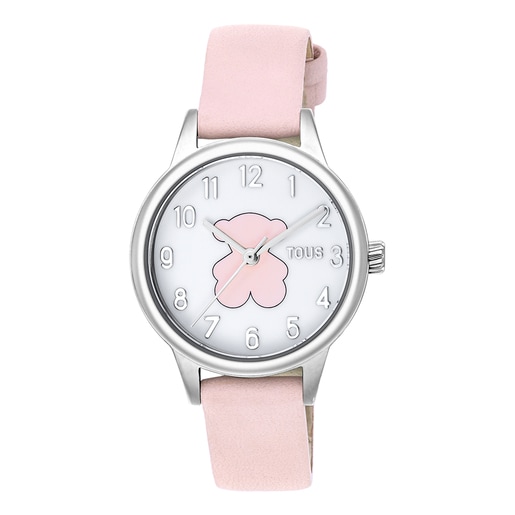 Reloj analógico New Muffin de acero con correa de piel rosa