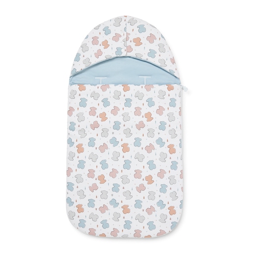 Saco universal Tous Baby para cuco, capazo o silla de paseo reversible. Confeccionado en suave algodón estampado con osos multicolor. Forro interior de algodón a rayas. Abertura lateral con cremallera. Composición: 100% Algodón. Color: Azul. Medidas: 38x78cm. Certificado OEKO/TEX*. Fabricado en la UE.