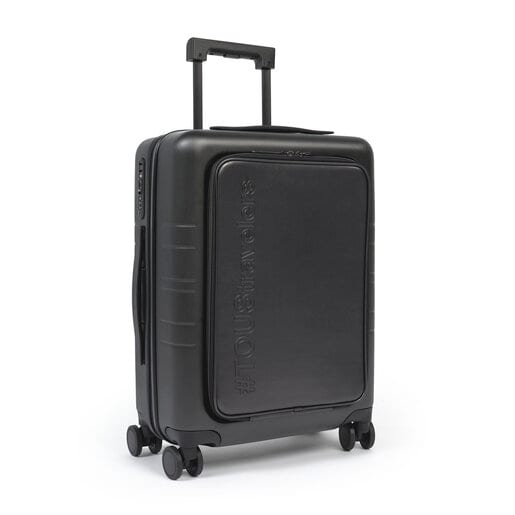 Trolley TOUS Travelers de policarbonato. Color negro. Cierre cremallera y candado con combinación TSA (Transportation Security Administration). Departamentos interiores: tres con cierre cremalletra. Medidas: 24,5 x 41 x 52,5 cm.