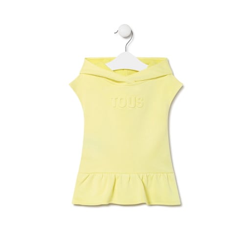 Vestido de bebé Tous Babycon capucha, sin mangas de corte cintura baja evasé. Confeccionado en suave algodón liso con logo TOUS bajo escote. Composición: 100%Algodón. Color: Amarillo. Certificado OEKO/TEX*. Fabricado en la UE.