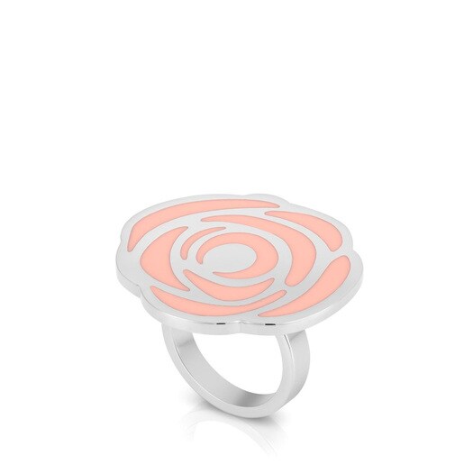 Anillo TOUS Rosa d'Abril en acero y esmalte. Motivo: 3 cm.