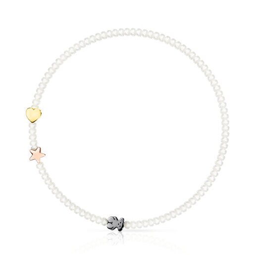 Collar TOUS Sweet Dolls de perlas de 0,55 cm y baño de oro 18 kt sobre plata, baño de oro rosa 18 kt sobre plata y plata dark silver. Motivos: 1-1,2 cm. Largo: 42 cm. Plata de primera ley recubierta de oro de 18kt con un espesor de 3 a 5 micras y sin ningún otro metal entre ambos. - (Dark Silver: Plata de primera ley cubierta por un baño de rutenio, mineral que aporta robustez y brillo.)