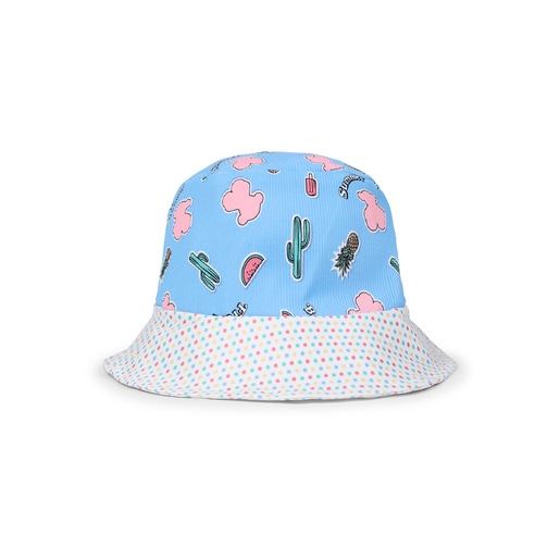 Gorrito de playa Tous Baby con el ala de lunares multicolor y la corona multiestampada. Ideal para proteger al bebé del sol. Composición: 58% Algodón 42% Viscosa // Forro: 100% Algodón. Color: Azul celeste. Fabricado en la UE.
