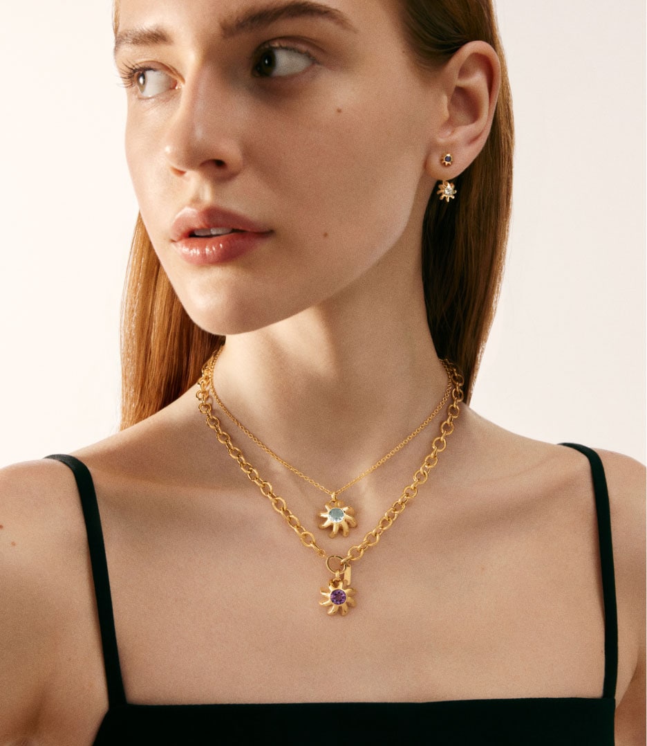 Dije con baño de oro 18 kt sobre plata y amatista Galia