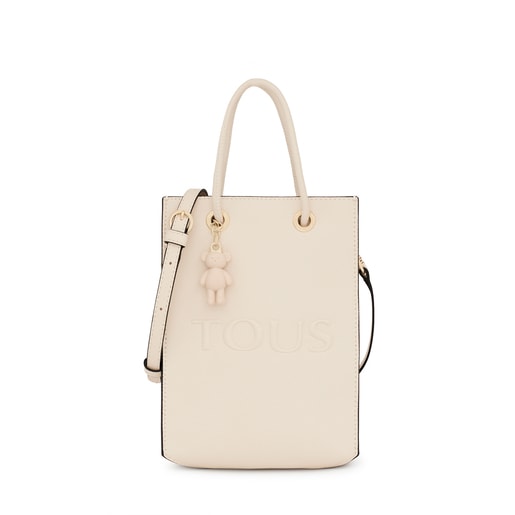 Mini bolso bandolera TOUS de la colección La Rue de piel sintética con acabado saffiano en color beige. Logo con relieve. Asas fijas y opción de asa con ganchos extraíble y ajustable. Bolsillo interior con logo. Medidas (alto x ancho x fondo): 20 x 16 x 6 cm.