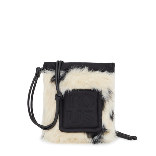 Mini bolso TOUS Empire Fur de pelo sintético con estampado animal print en color blanco y negro. Cierre con cordón ajustable. Bolsillo interior abierto. Asa bandolera ajustable con nudos. Medidas (alto x ancho x fondo): 20 x 16 x 5,5 cm.