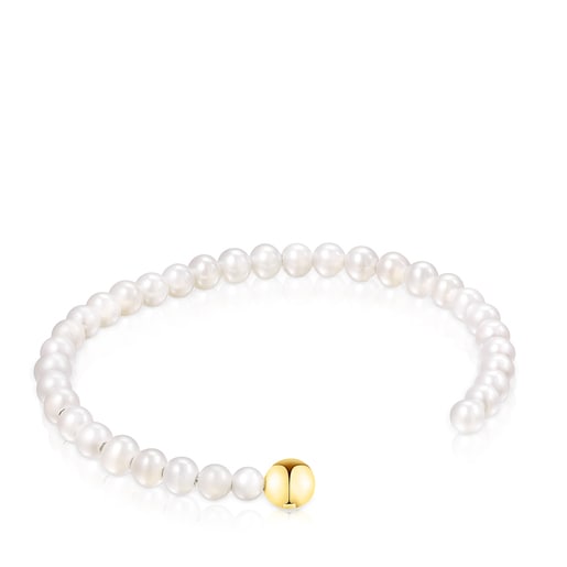 Esclava TOUS Gloss de perlas cultivadas de agua dulce de forma semi-redonda de 5mm y bola con baño de oro 18 kt sobre plata de 7mm. Técnica de producción: Fundición.