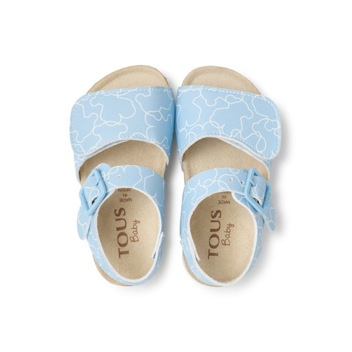 Sandalia Tous Baby osos Kaos con hebilla al tobillo y cierre adherente sobre el empeine. Sujeta a la perfección el pie. Suela anatómica. Cómoda, ligera y a la moda. Composición: 55% Polipropileno 45% Nylon // Forro: Piel Porcino // Planta: Piel Porcino // Suela: 100% Silicona. Color: Azul celeste. Fabricado en la UE.