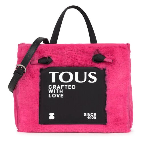 Bolsa shopping mediano TOUS de la colección Amaya Fur de vinilo efecto piel combinado con cobertura efecto pelo en color fucsia. Cierre con botón magnético. Asas de mano y asa de bandolera ajustable y extraíble. Bolsillo exterior plano y dos bolsillos interiores con cremallera. Medidas: 15,5 x 20,5 x 27 cm.