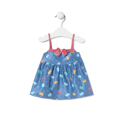 Vestido de playa Tous Baby de finos tirantes con escote recto de corte evasé. Fruncido y lazo en el escote. Estampado con osos coctel multicolor. Composición: 80% Poliéster 20% Elastano. Color: Azul. Fabricado en la UE.